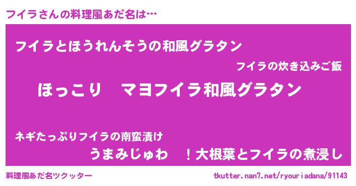 | 男性向けラノベタイトル風あだ名 | 『この素晴らしい世界にフイラを!』 |