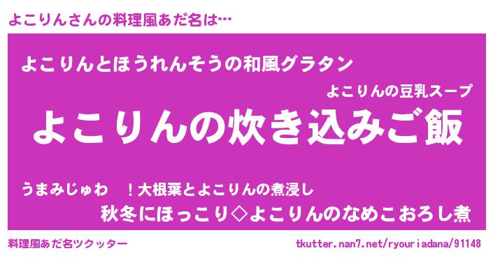 | ヒーロー風カッコイイあだ名 | 『幻影騎士ヨコ』『ウルトラよこりんマン』 |