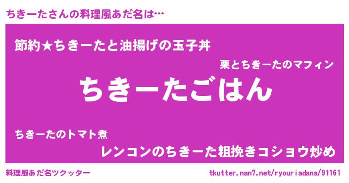 | 男性向けラノベタイトル風あだ名 | 『チキータスレイヤー』『ちきーたの憂鬱』 |