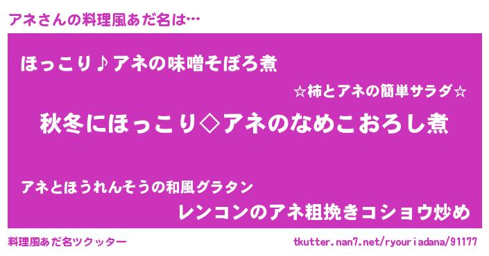 | ファンタジー風あだ名 | 『アネフェル』『ゼアネトゥ』 |