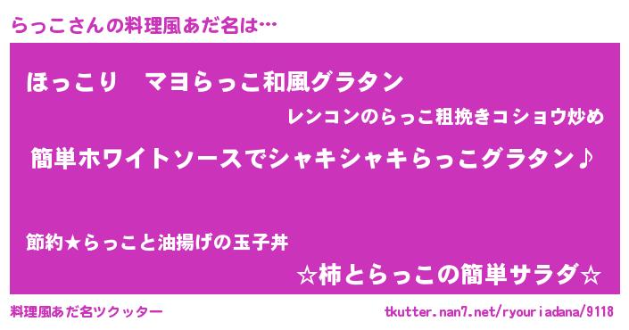 | ヘコむあだ名 | 『らっぷりん』『らっにゅー』『豆乳』 |