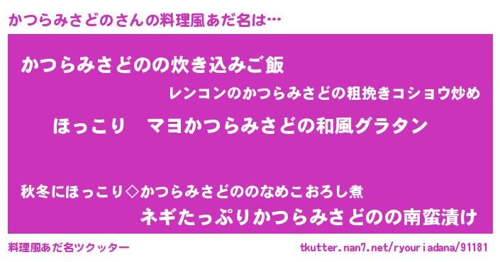 | 意味不明あだ名 | 『住所不定無職かつらみさどの(65歳)』 |