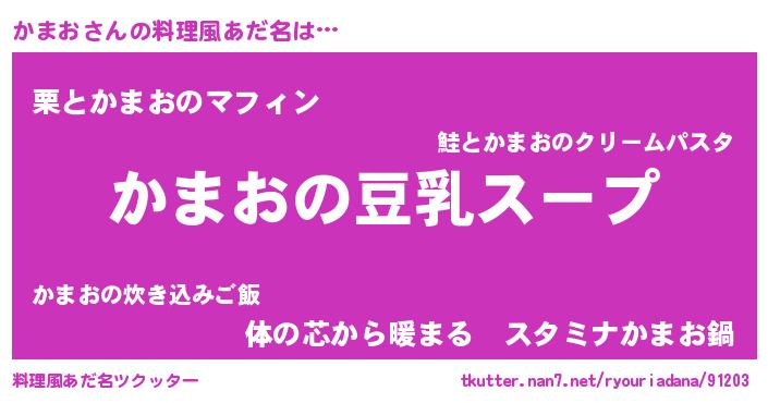 | 意味不明あだ名 | 『とにかく怪しいかまお』『自称かまお』 |