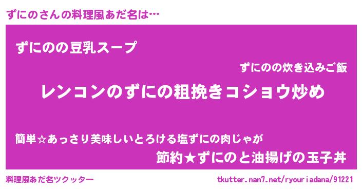 | 男性向けラノベタイトル風あだ名 | 『魔法科高校のずにの』『ずにのの憂鬱』 |