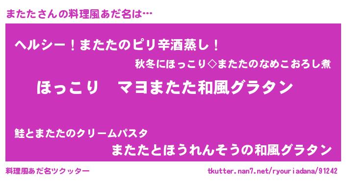 | 男性向けラノベタイトル風あだ名 | 『この素晴らしい世界にまたたを!』 |