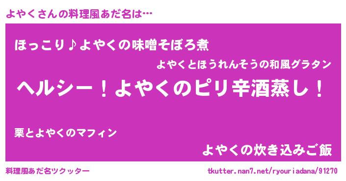 | ヘコむあだ名 | 『よやっふぃ~』『よやを』『牛乳』 |
