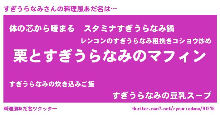 | 胡散臭い通販商品みたいなあだ名 | 『幸せが訪れる高級そうな壺…その名も「すぎうらなみ」』 |