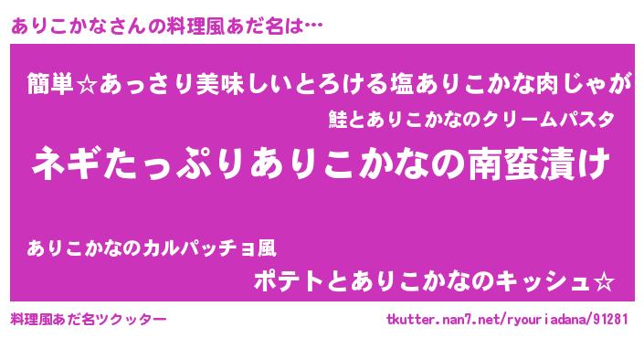 | ヘコむあだ名 | 『ありにゅー』『ありこかな(小並感)』 |