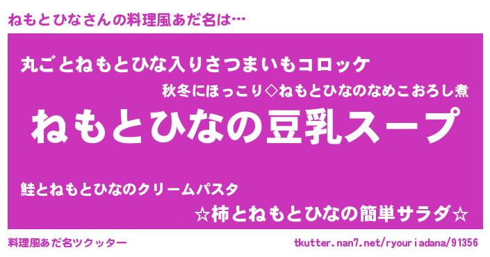 | ヘコむあだ名 | 『ねもぷりん』『ねもとひな(遠い目)』 |