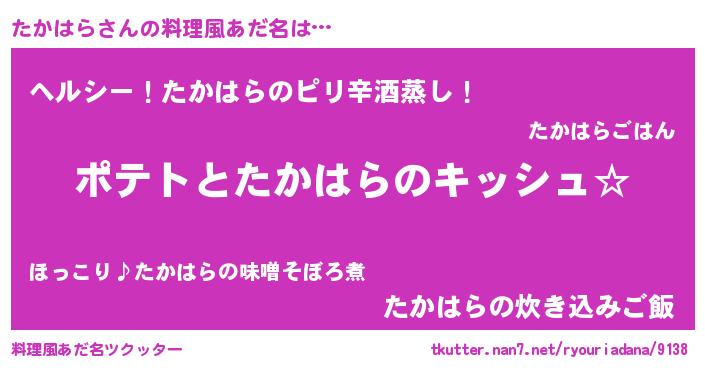 | 女子向けラノベタイトル風あだ名 | 『たかはらの卵を拾いまして』 |