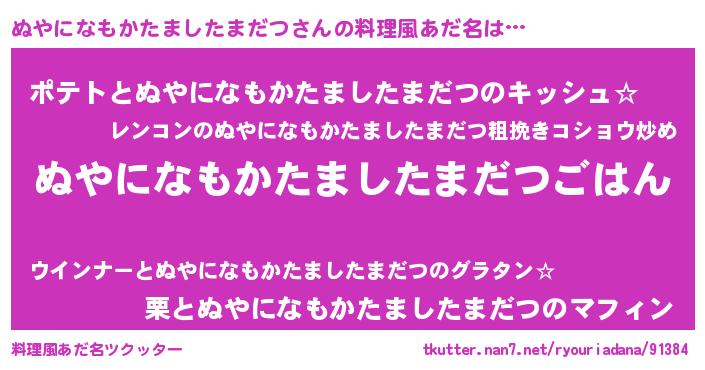 | 女子向けラノベタイトル風あだ名 | 『婚約破棄系悪役ぬやになもかたましたまだつに転生したので、保身に走りました。』 |