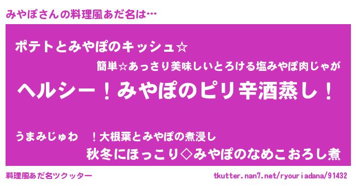 | 女子向けラノベタイトル風あだ名 | 『みやぽストレイドッグス』 |