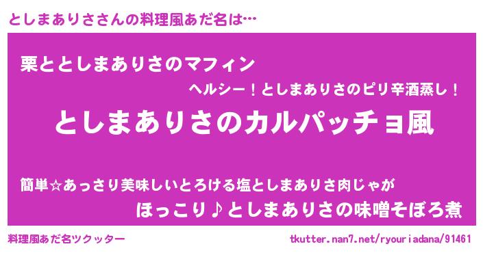 | ヘコむあだ名 | 『としふぇ~』『としまありさ(震え声)』 |