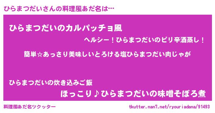| ヘコむあだ名 | 『ひらまつだい(爆)』『ひらふぇ~』 |