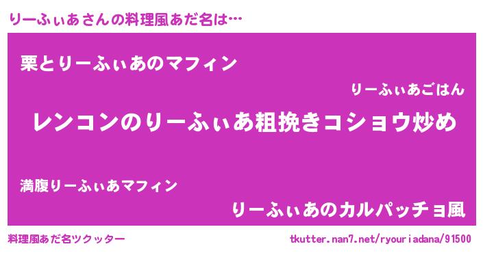 | ヘコむあだ名 | 『りーふぃあ(笑)』『りーぷりん』 |