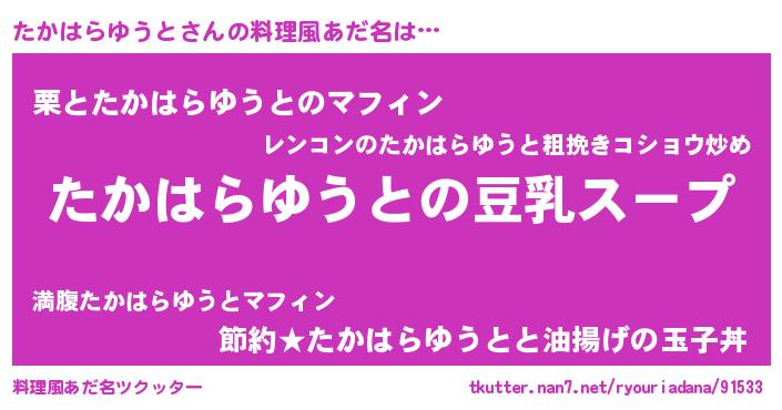 | 胡散臭い通販商品みたいなあだ名 | 『信頼と実績のサプリメント…その名も「たかはらゆうと」』 |