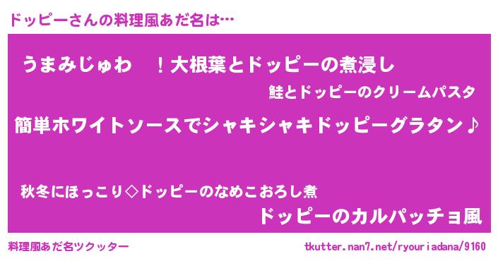 | 女子向けラノベタイトル風あだ名 | 『ドッピー様がみてる』 |