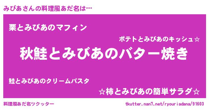 | 女子向けラノベタイトル風あだ名 | 『みびあの契約王妃』『死神みびあの再婚』 |