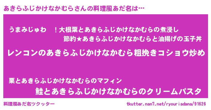 | 意味不明あだ名 | 『自称あきらふじかけなかむら』 |