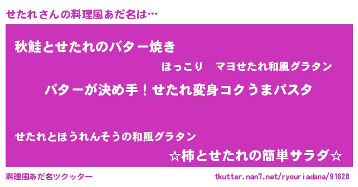 | 女子向けラノベタイトル風あだ名 | 『せたれ恋絵巻』『せたれの契約王妃』 |