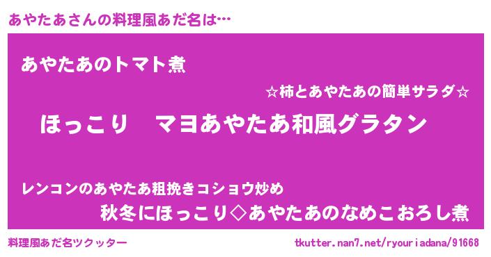| 意味不明あだ名 | 『住所不定無職あやたあ(84歳)』 |