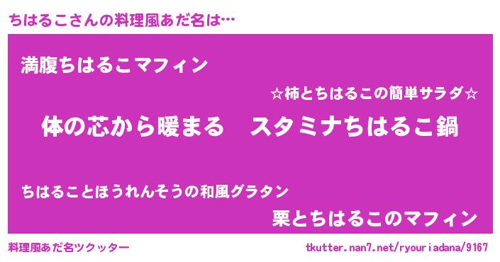 | ヒーロー風カッコイイあだ名 | 『ウルトラちはるこマン』『ネオチハルコ』 |