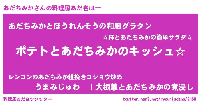 | 意味不明あだ名 | 『とにかく怪しいあだちみか』 |