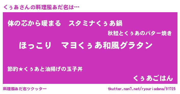 | 意味不明あだ名 | 『住所不定無職くぅあ(14歳)』 |