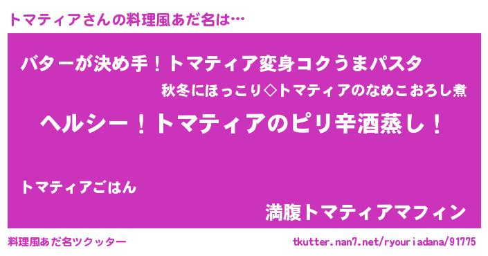 | 意味不明あだ名 | 『自称トマティア』『永久保存トマティア』 |