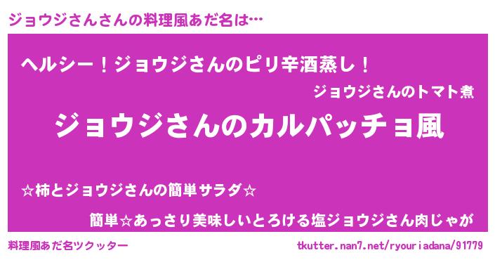 | ヘコむあだ名 | 『ジョウジさん(笑)』『なまこ酢』 |
