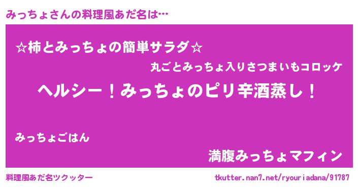 | 意味不明あだ名 | 『自称みっちょ』『永久保存みっちょ』 |