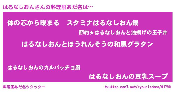 | 男性向けラノベタイトル風あだ名 | 『転生したらはるなしおんだった件』 |