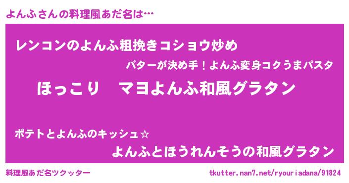| 意味不明あだ名 | 『住所不定無職よんふ(10歳)』『自称よんふ』 |