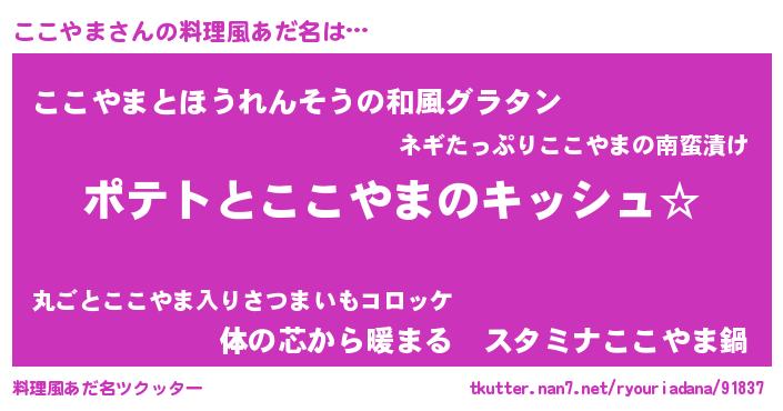 | 胡散臭い通販商品みたいなあだ名 | 『伝統あるサプリメント…その名も「ここやま」』 |