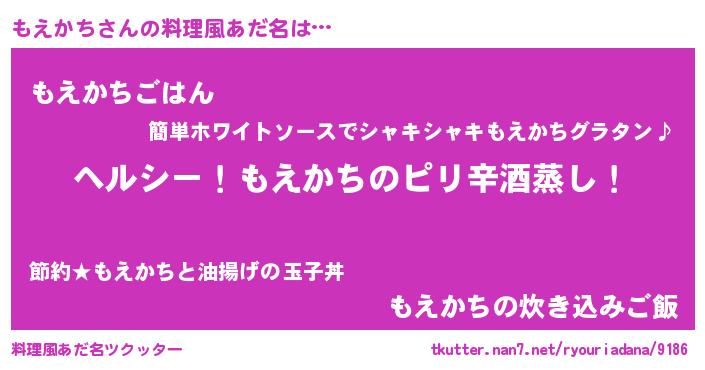 | 意味不明あだ名 | 『自称もえかち』『めかぶ科もえかち属』 |