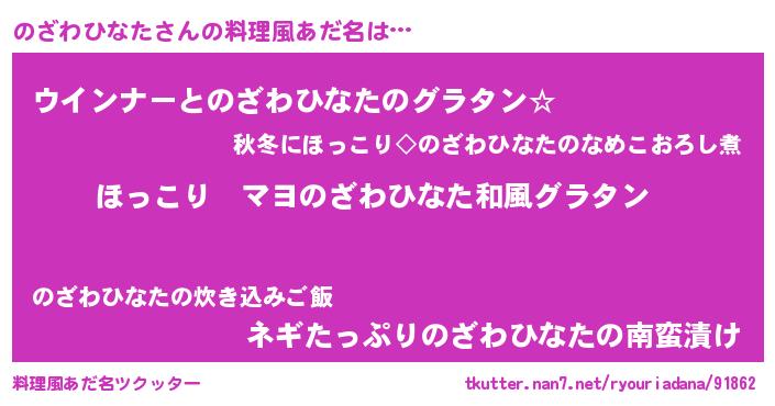 | 恥ずかしいあだ名 | 『のざっちょ』『プリティーのざわひなた』 |