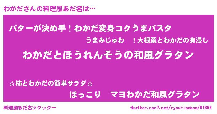 ポケモン風あだ名 | 『ワカキング』『ワックウザ』 |
