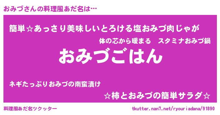 | 胡散臭い通販商品みたいなあだ名 | 『来世でも幸せになれる健康食品…その名も「おみづ」』 |