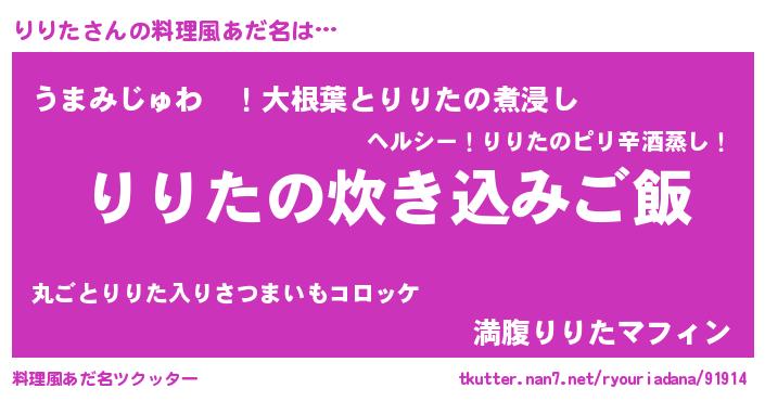 | ヘコむあだ名 | 『なまこ酢』『りりた(笑)』 |
