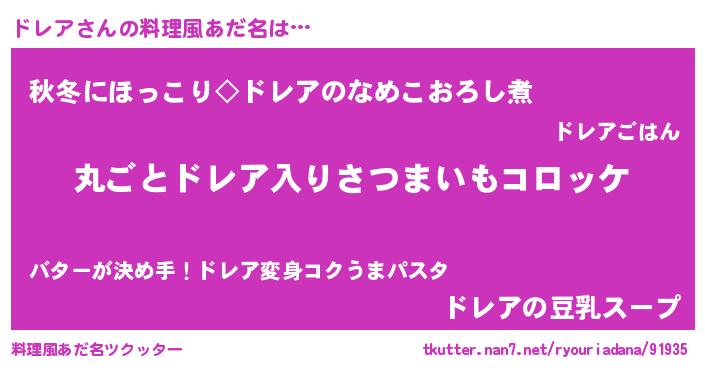 | 男性向けラノベタイトル風あだ名 | 『この素晴らしい世界にドレアを!』 |