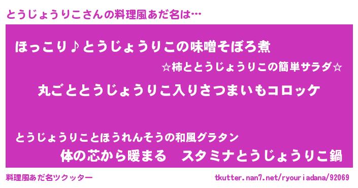 | 意味不明あだ名 | 『住所不定無職とうじょうりこ(43歳)』 |