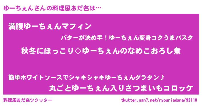 | ヘコむあだ名 | 『ゆーちぇん(遠い目)』『ゆーを』 |