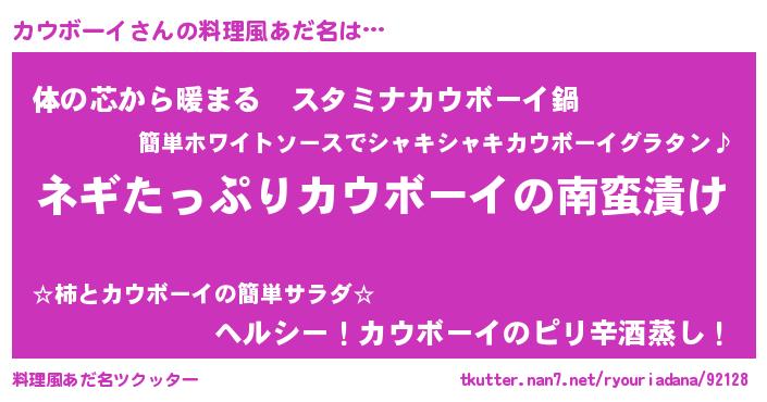 | ファンタジー風あだ名 | 『カウフェル』『エターナルカウボーイー』 |