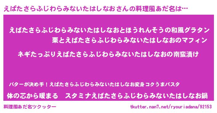 | ヒーロー風カッコイイあだ名 | 『スーパーエバタサラフジワラミナイタハシナオ』 |