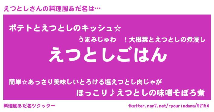| 男性向けラノベタイトル風あだ名 | 『エツトシスレイヤー』『えつとしの憂鬱』 |