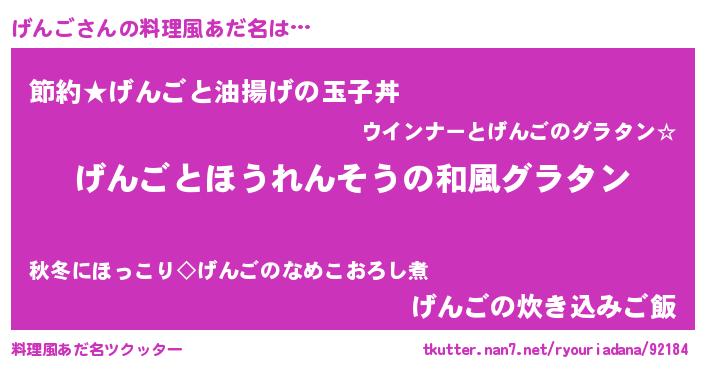 | 肩書あだ名 | 『げんご上級大将』『げんご御曹司』 |