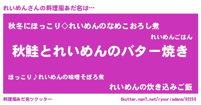 | ヘコむあだ名 | 『れいめん(小並感)』『れいっふぃ~』 |