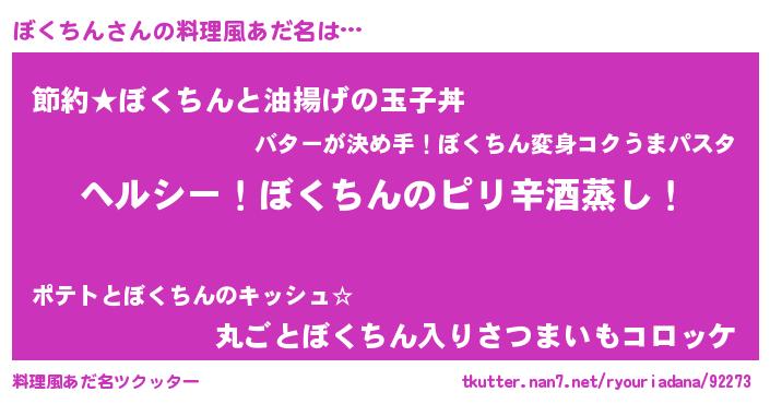 | 女子向けラノベタイトル風あだ名 | 『闇のぼくちん』『ぼくちん恋絵巻』 |