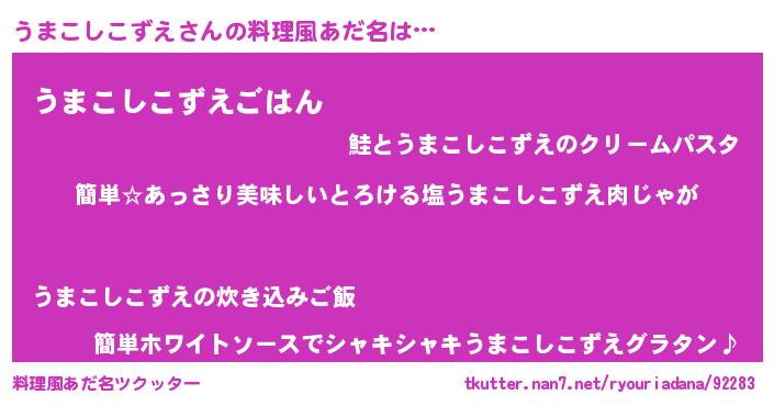 | 意味不明あだ名 | 『永久保存うまこしこずえ』 |