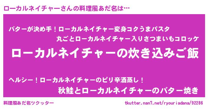 | 男性向けラノベタイトル風あだ名 | 『うちのローカルネイチャーが世界を掌握している!』 |